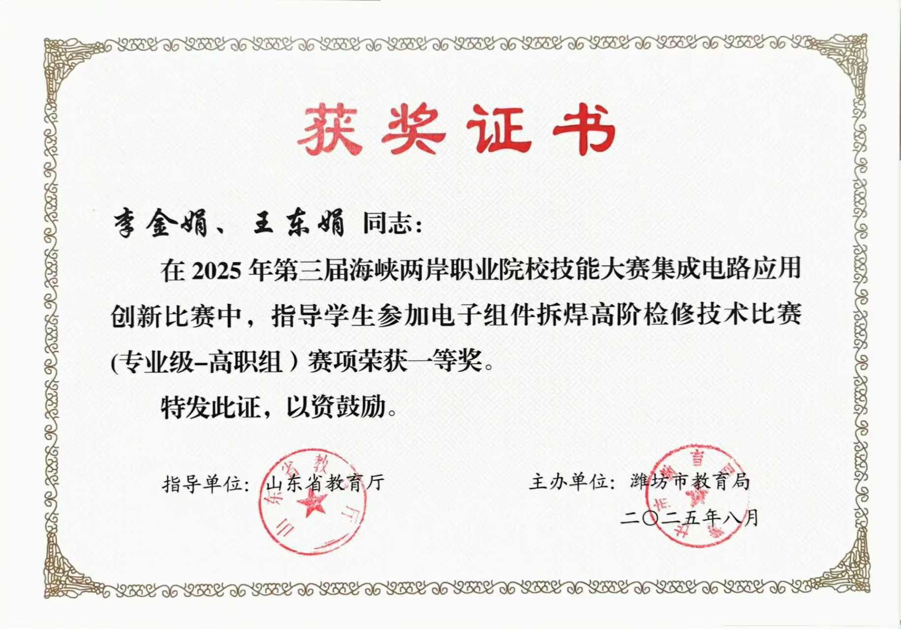 2025年第三届海峡两岸职业院校技能大赛集成电路应用创新赛项(专业级-高职组)比赛结果公布。我校教师李...